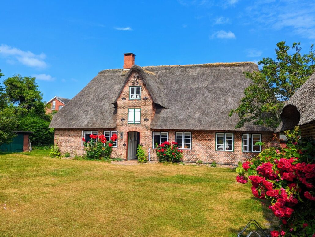 Aber auf Amrum gibt es ja nicht nur Strand, Wellen und den Leuchtturm. Die Insel hat fünf Dörfer mit 2.200 Einwohner*innen, und in den meisten Dörfern findet man noch viele reetgedeckte Friesenhäuser mit beschaulichen Blumen- und Obstbaumgärten davor. Einige der alten Häuser wurden zu Cafés oder Restaurants umgestaltet. Es gibt hier alles – von friesischer Seefahrer-Kneipe bis Spezialitätenrestaurant.
