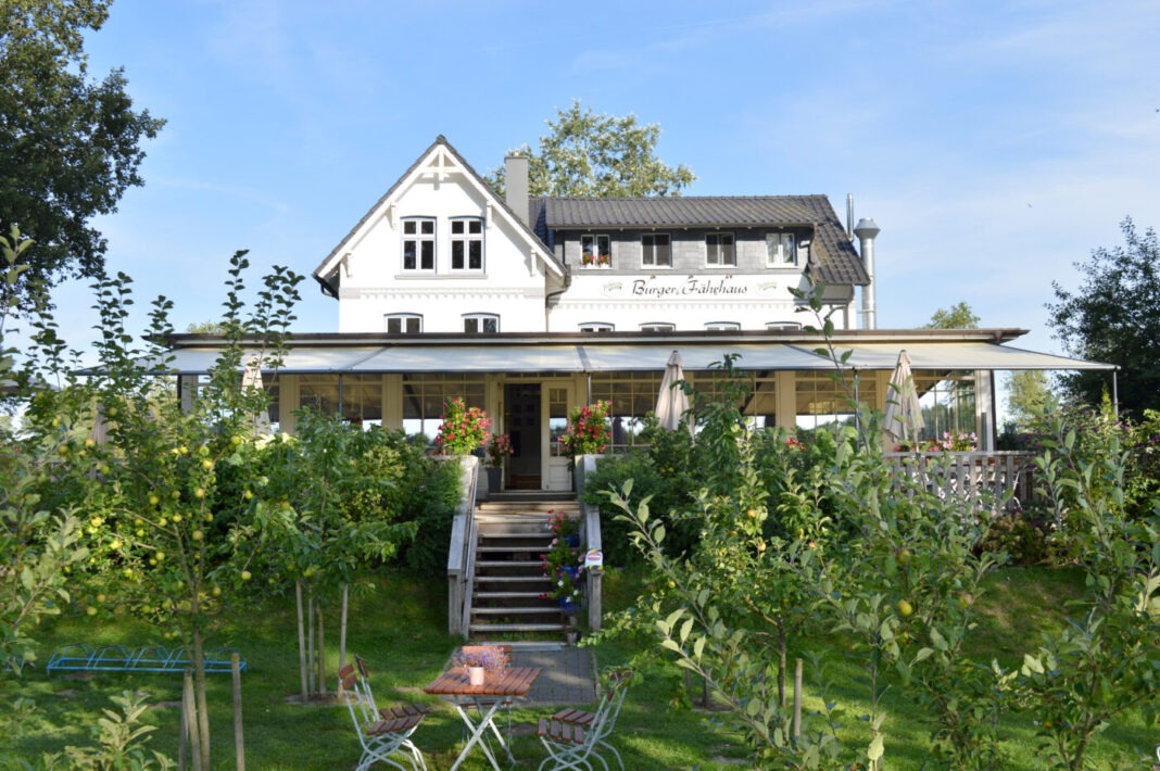 Feiern können Sie hier ebenso gut wie entspannen: Sommerfeste, Hochzeiten, Geburtstage, Jubiläen oder auch Trauerfeiern – maßgeschneidert, maritim, hell, bodenständig und fein. Wer mag, bleibt einfach etwas länger sitzen oder übernachtet in einem der sechs Hotelzimmer, schaut den vorbeiziehenden Schiffen hinterher und nimmt sich genau das mit, wofür das Burger Fährhaus steht: entschleunigte Zeit mit erstklassiger Aussicht.