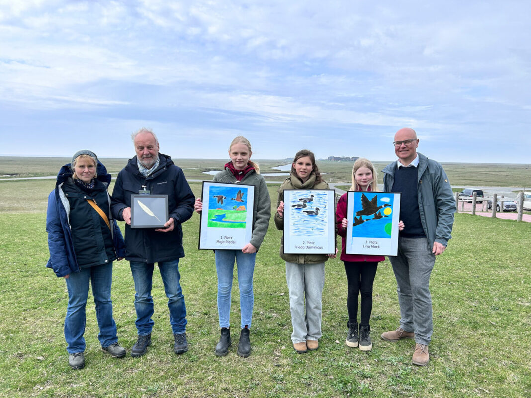 Im Rahmen der Feierlichkeiten präsentierte Minister Goldschmidt auch das neue Plakat für die Ringelganstage 2027, dessen Motiv in einem schulischen Malwettbewerb ausgewählt wurde. Den ersten Platz belegt das Kunstwerk von Maja Riedel aus der Klasse 6c des Gymnasium Heide-Ost. Platz zwei geht an Frieda Dominicus aus der Klasse 5a der Theodor-Storm-Schule in Husum. Lina Mock aus der Klasse 4a der Iven-Agßen-Schule holt den dritten Platz ebenfalls nach Husum. Insgesamt beteiligten sich 744 Schüler*innen aus 31 Schulen der Nationalparkregion am Malwettbewerb – ein Rekord! Die Kunstwerke auf den Plätzen eins bis neun werben als Postkartenmotive für die Ringelganstage im kommenden Jahr.