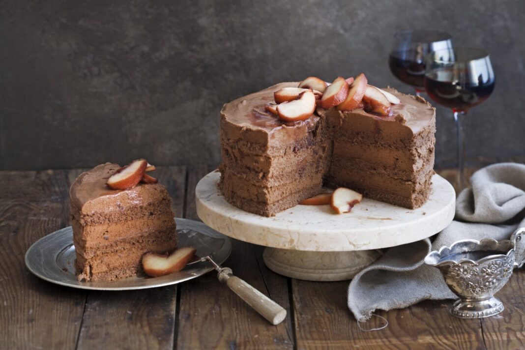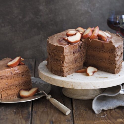 Schokotorte mit Rotwein-Äpfeln