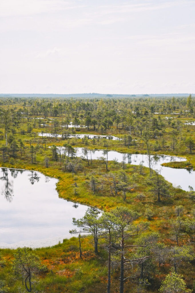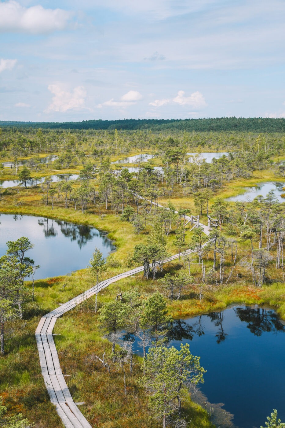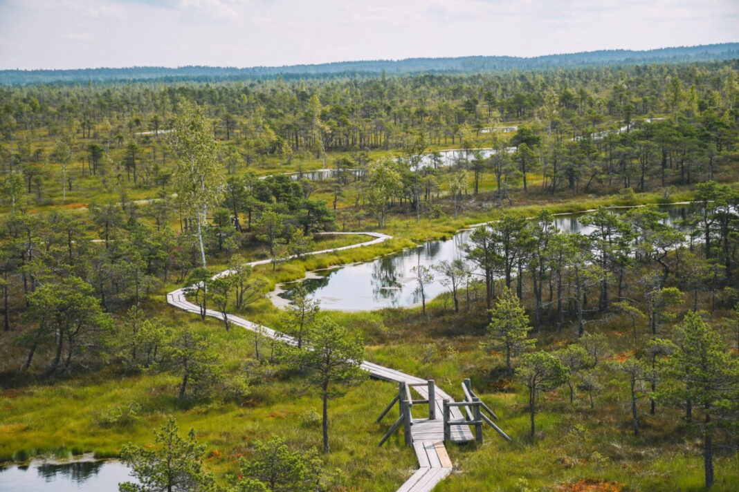 Wer in den Badeort Jurmala kommt, lässt den Kemeri Nationalpark nicht links liegen. Über Holzbohlen stapfen wir durchs scheinbar endlose Hochmoor. Jeder Aussichtspunkt übertrumpft den vorherigen. Spiegelglatte Tümpel, Moos und Flechten in verschiedenen Farbtönen zeichnen ein von oben fast surreales Bild.